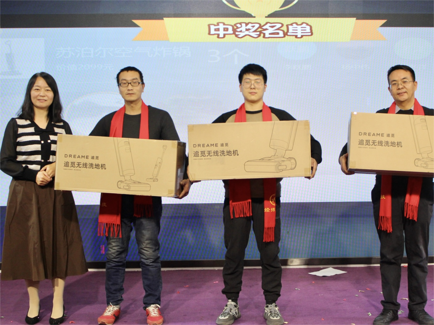联欢会期间还设置了四轮抽奖,随着一波波幸运礼品的抽出,现场气氛被一次次推向高潮。中奖的幸运儿们欢呼雀跃地走上舞台,脸上洋溢着幸福的笑容,现场充满了温馨与欢乐。